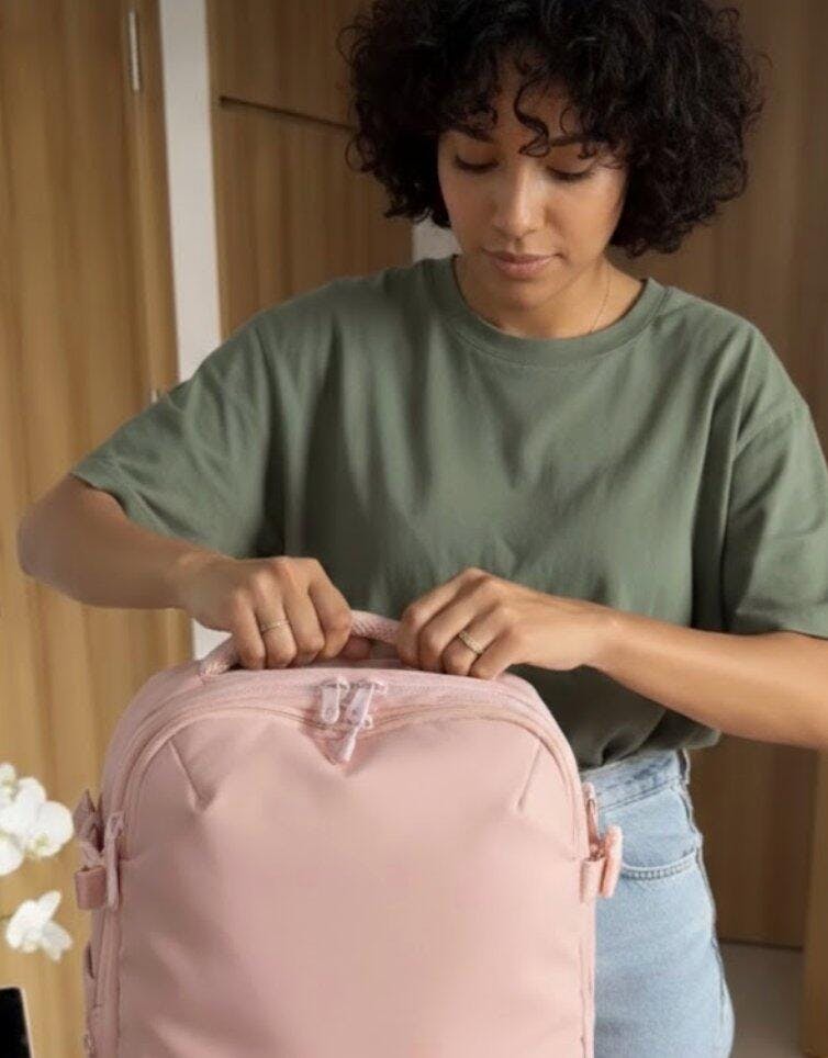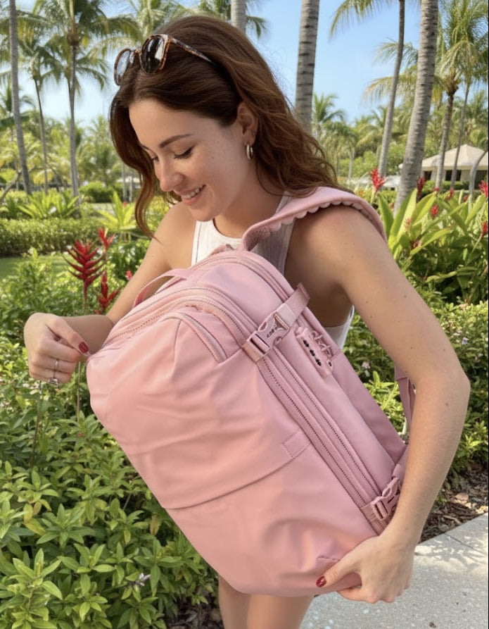 Multiple compartments keep everything neat and easy to grab. Need more space? Just unzip and pack that little something extra! 👠👜✨